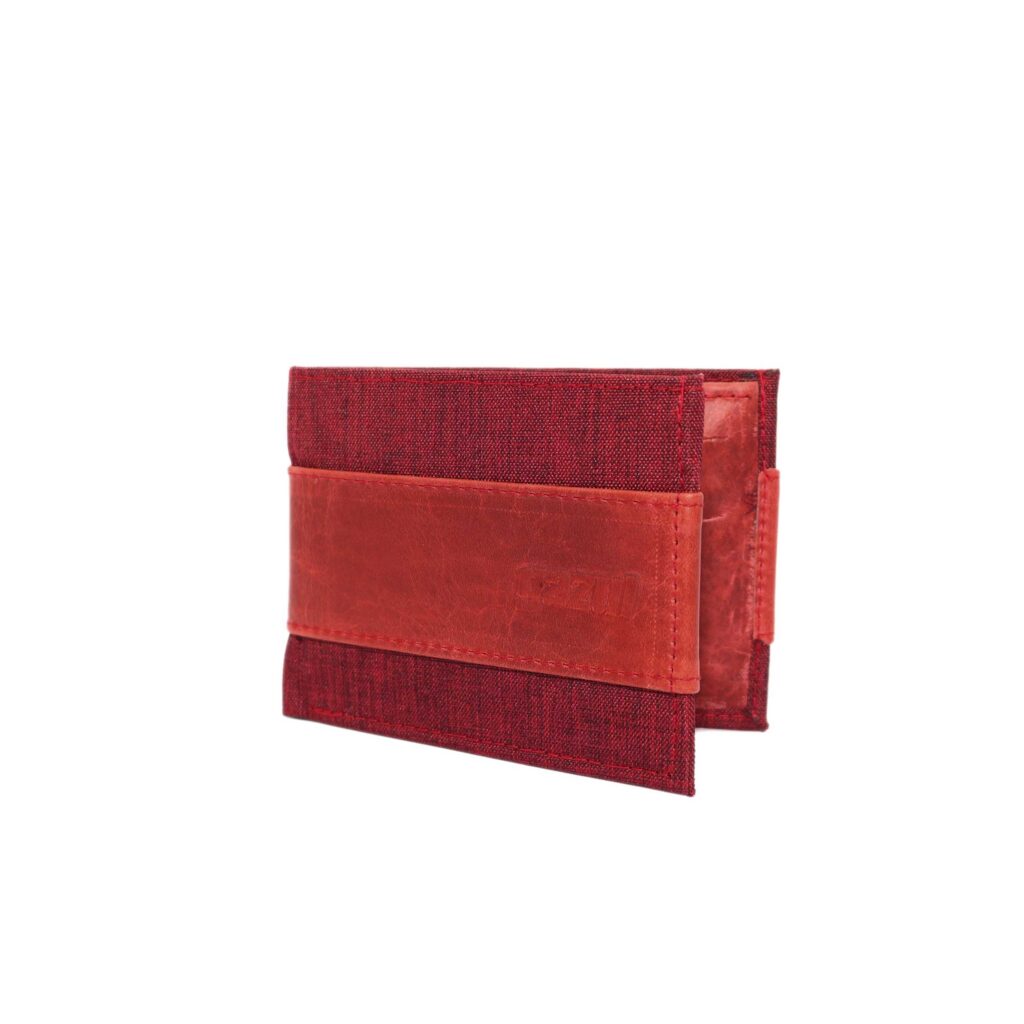 Billetera Corta en cuero graso con una linea en lona importada en color variable quantity